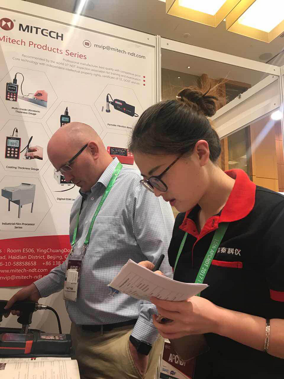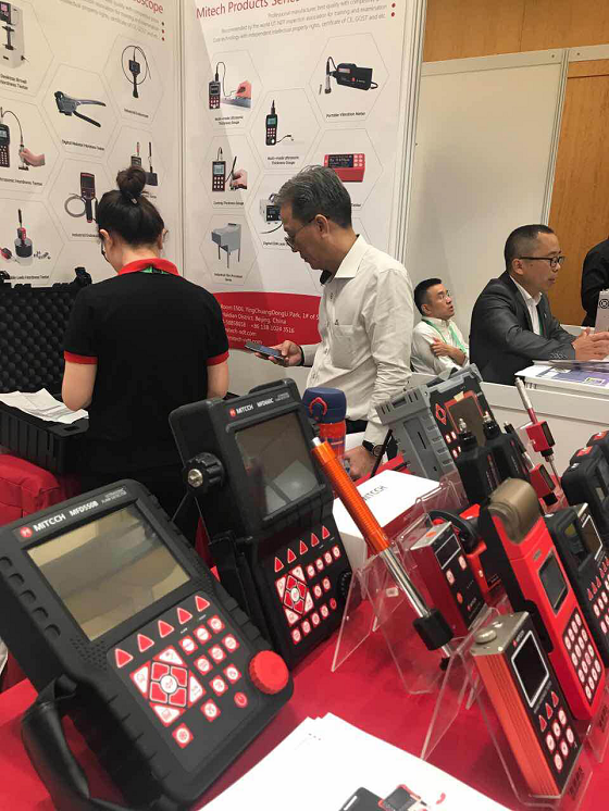 Many companies participating in this exhibition and showed their own innovative products, MITECH exhibited the following main products in this meeting: Leeb Hardness Tester Series including MH100, MH320, MH660 and etc. They can be applied in each process for hardness testing and quality control, especially for the onsite testing of large-sized, non-removable workpiece. The ultrasonic thickness gauge series including MT180, MT190,MT660 and etc. Supply perfect solutions for NDT testing of obturated pipe, containers and others under many limited work conditions. Some of them have penetrate-coating functions, with which they can eliminate the extra work for clearing the coating. Ultrasonic flaw detectors MFD550B and MFD 660C can test the flaws fast and accurately. Their measurement range of 0-9999mm can meet the needs of many industries. What’s more, MITECH magnetic particle flaw detector MT-1A adopts large capacity Li battery, which solved the disadvantage of 220v electric resource. It can also process images, save data and print test reports. Coating thickness tester MCT200 can do fast NDT testing of coating and film. Handhold spectrometer MAS800/860 can check the metal types and components of alloy. Wire rope computer detector MRT10-S can test the rust and abrasion of the inside and outside of the wire rope and generate report. Electric spark leak detector MTH-7D can test the leakage of anticorrosive coating. MR200 adopts new CPU and Bluetooth module can test large workpiece. Vibration meter MV800 has wide measurement range, more portable, usually used in field and high altitude. All of our products are widely used in aviation, aerospace, weapons, ships, nuclear power, electricity, railways, petroleum, natural gas, chemicals, automobiles, construction, water conservancy, machinery manufacturing and other fields. The participating MITECH products have attracted the attention of many professional users in non-destructive testing industry in Asia Pacific. At the same time, the company has also accepted the most advanced information of non-destructive testing industry during the meeting. MITECH always adheres to the principle of "technological innovation is the basis of development and professional services is the boat for ahead. ", learn and absorb the cutting-edge technology in developed countries to integrate into product development and application, strive to make the product's performance and technical indicators reach the international advanced level. We believe this meeting will play a positive role in promoting MITECH brand and reputation. I also believe that MITECH will get better and better with the support of all parties.