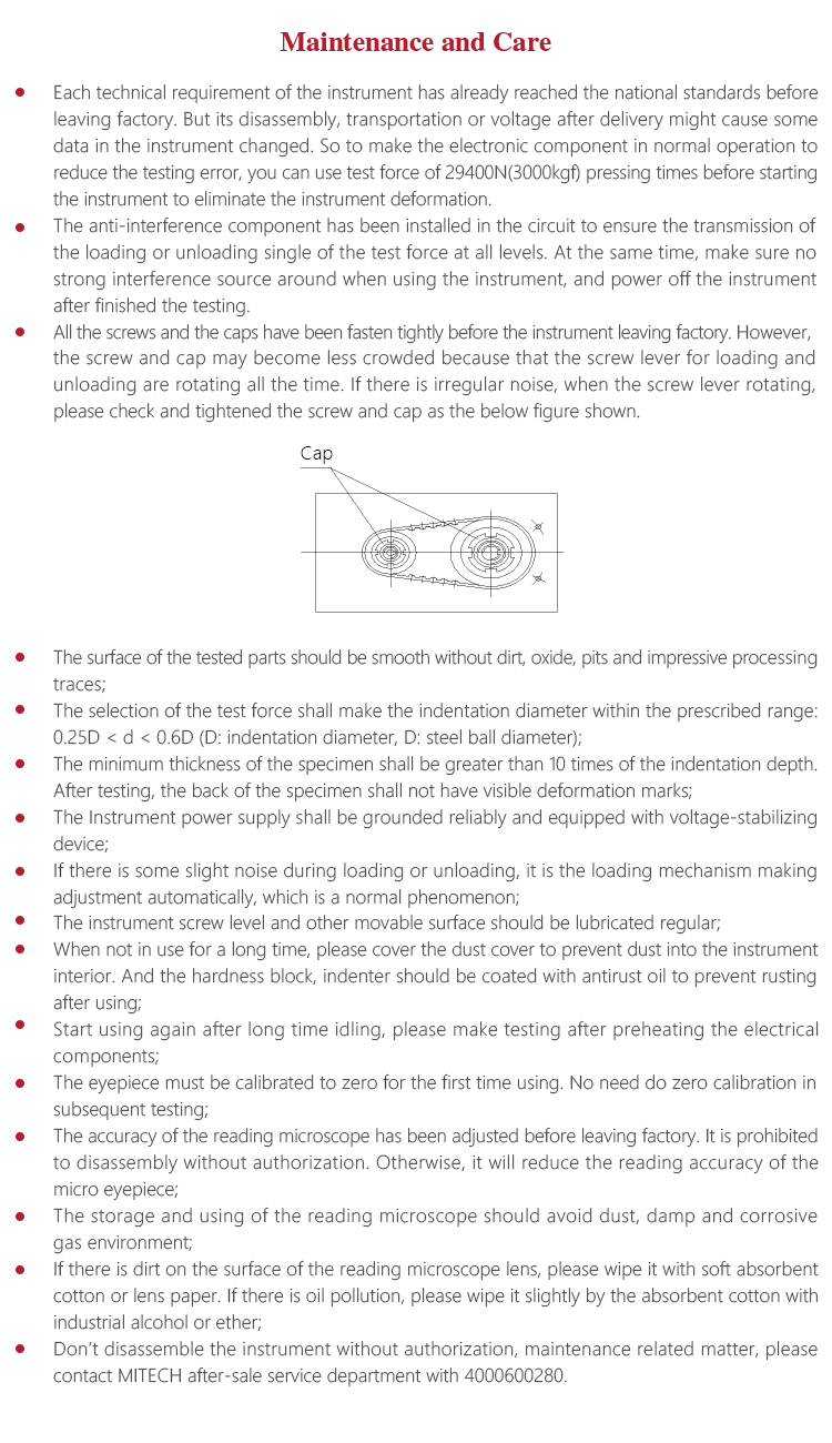 the hardness block, indenter should be coated with antirust oil to prevent rusting after using.