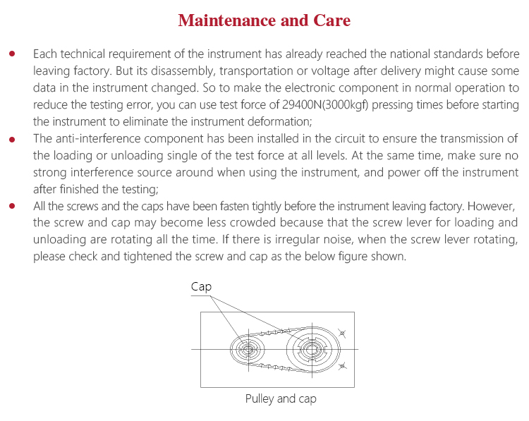 the hardness block, indenter should be coated with antirust oil to prevent rusting after using.