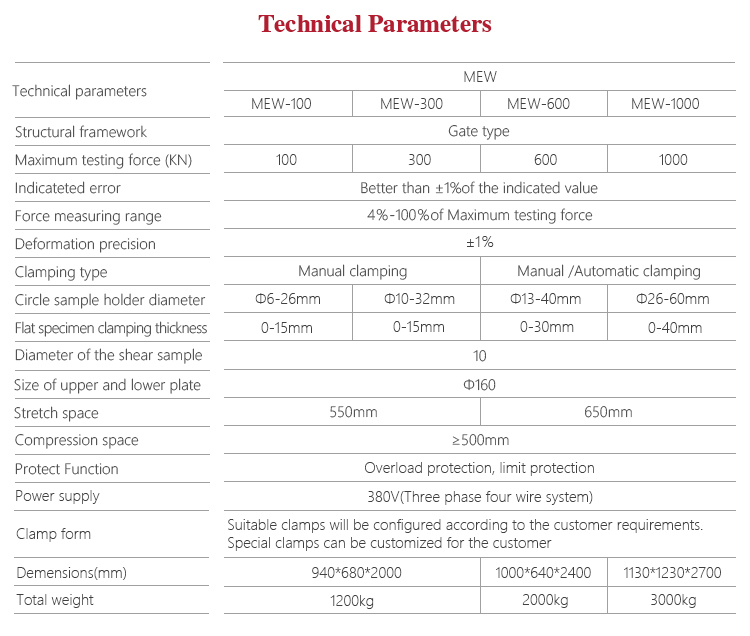 | Clamp form | Suitable clamps will be configured according to the customer requirements. Special clamps can be cus |