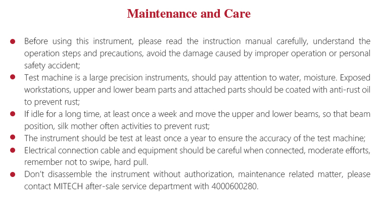 l Don’t disassemble the instrument without authorization, maintenance related matter, please contact MITECH after-sale service department with 4000600280.