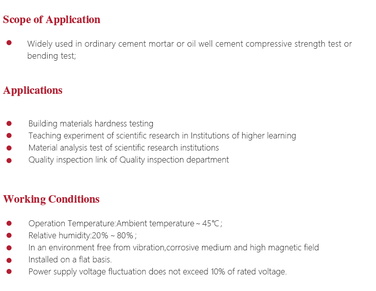 Instrument Featuresl Widely used in ordinary cement mortar or oil well cement compressive strength test or bending test;