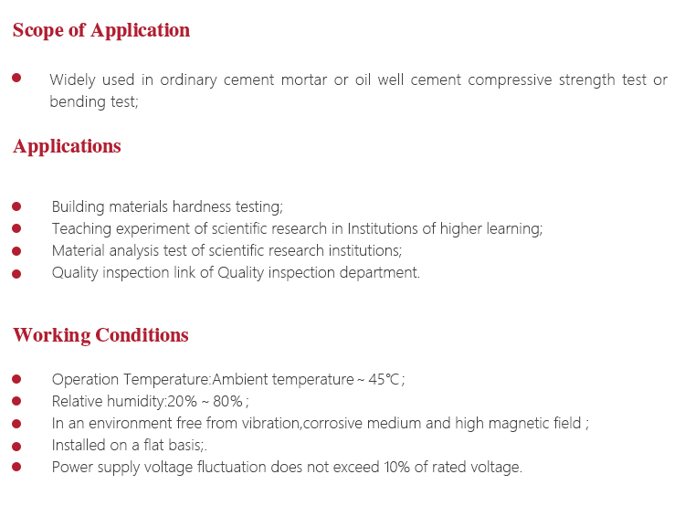 Instrument Featuresl Widely used in ordinary cement mortar or oil well cement compressive strength test or bending test;