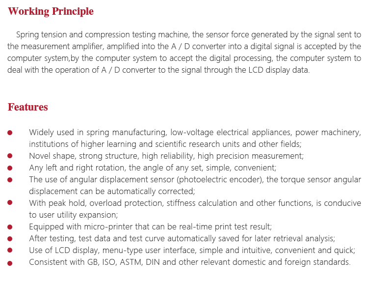 Instrument Featuresl Widely used in spring manufacturing, low-voltage electrical appliances, power machinery, institutions of higher learning and