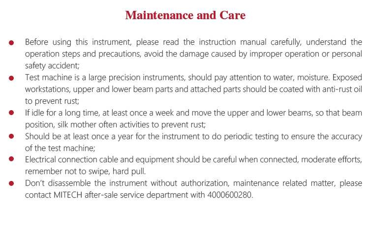 l Don’t disassemble the instrument without authorization, maintenance related matter, please contact MITECH after-sale service department with 4000600280.