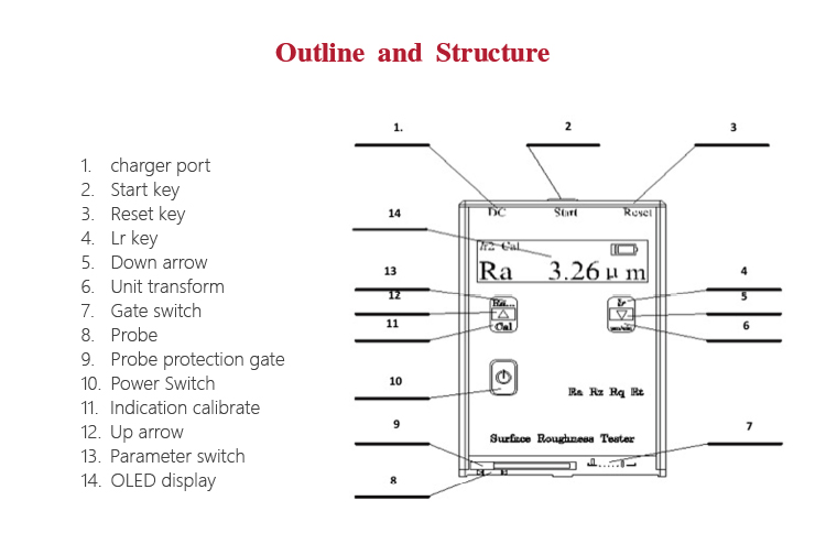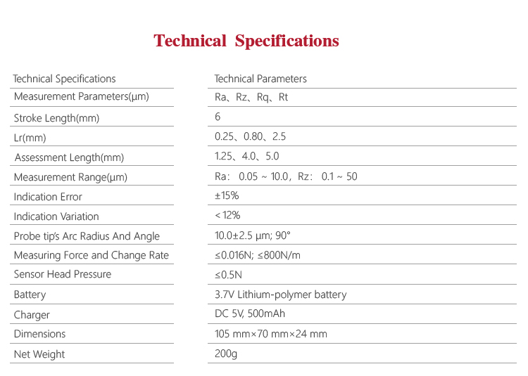 Instrument Featuresl Measurement parameters: Ra, Rq, Rz, Rt.