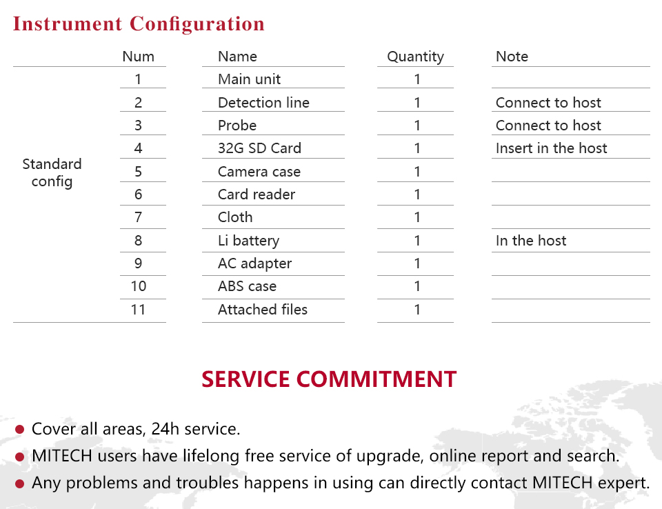 | MITECH 8G SD Card is also standard configuration of MVD built in main unit.It is mainly used for real-time storage of image and video. It effectively meets the needs of information collection and storage while detecting. It is a necessary part of the instrument. | |