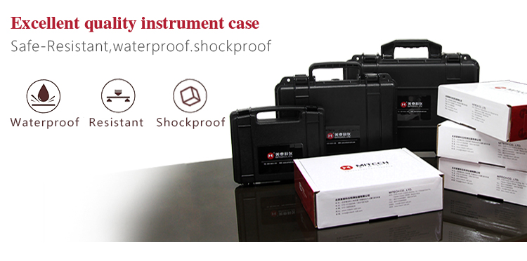 | The instrument case of Mitech series portable leeb hardness, length 35.5cm, width 19cm, height 11cm, weight of 1.5kg. Adopt ABS engineering plastic, It has excellent peroformance like waterproof, shockproof, excellent heat resistance and low temperature resistance. It can effectively prevent oil, dust and corrosion in harsh environment. Its size is in accordance with the standards for aviation and train carrying (capable of putting under the seat and on the luggage rack), it is safe, reliable and stable. |