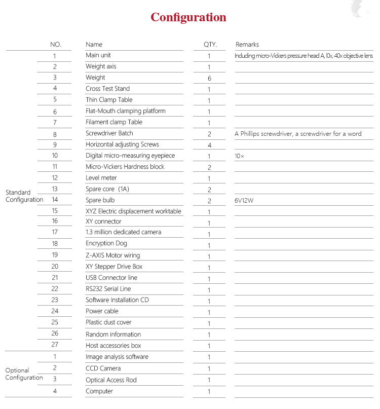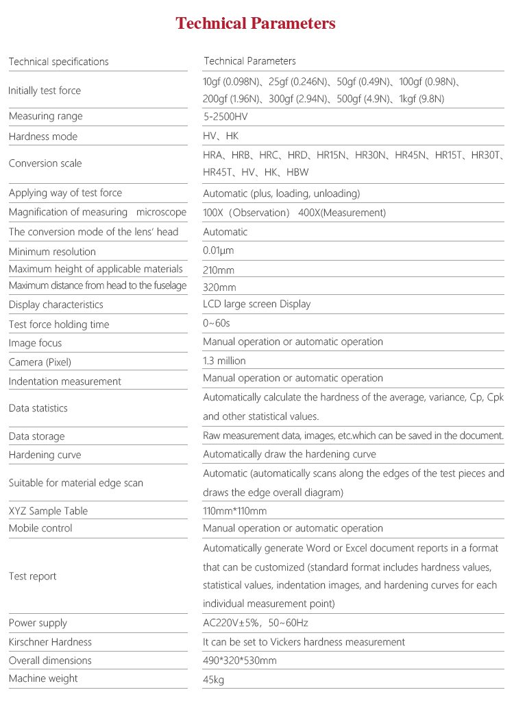 | Initially test force | 10gf (0.098N)、25gf (0.246N)、50gf (0.49N)、100gf (0.98N)、 200gf (1.96N)、300gf (2.94N)、500gf (4.9N)、1k |