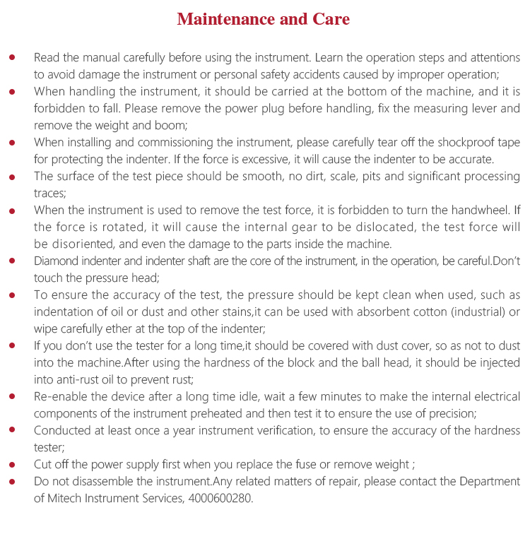 If you don’t use the tester for a long time,it should be covered with dust cover, so as not to dust into the machine.After using the hardness of the block and the ball head, it should be injected into anti-rust oil to prevent rust;