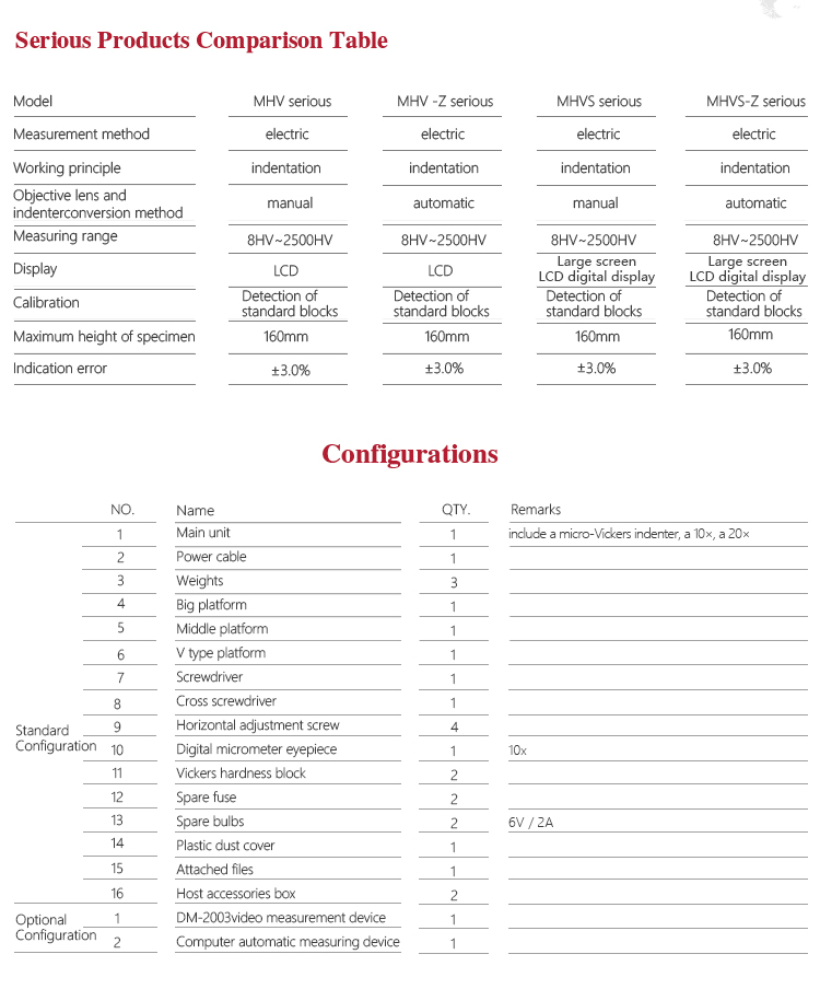 | Hardness symbol | HV2、HV3、 HV5、HV10、 HV20、HV30 |