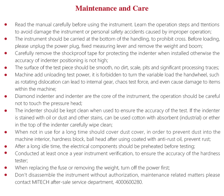 Conducted at least once a year instrument verification, to ensure the accuracy of the hardness tester