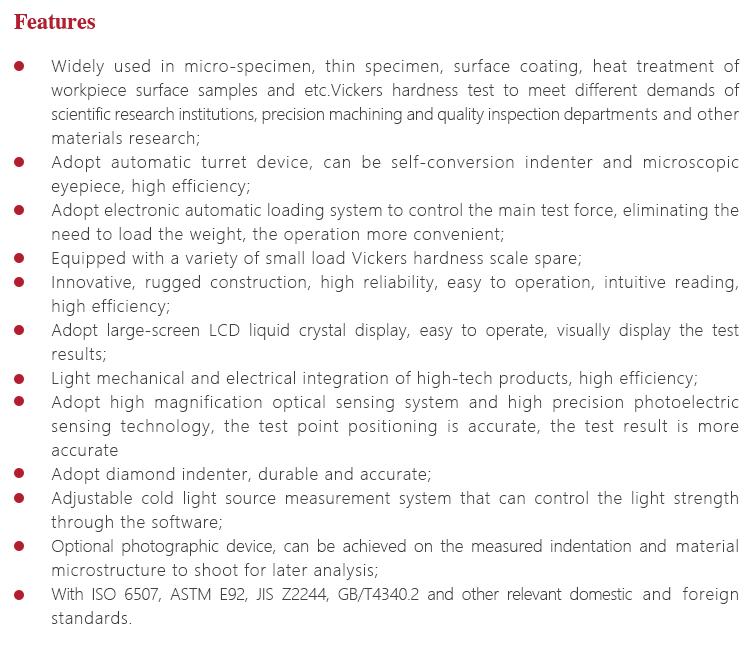 etc.Vickers hardness test to meet different demands of scientific research institutions, precision machining and quality