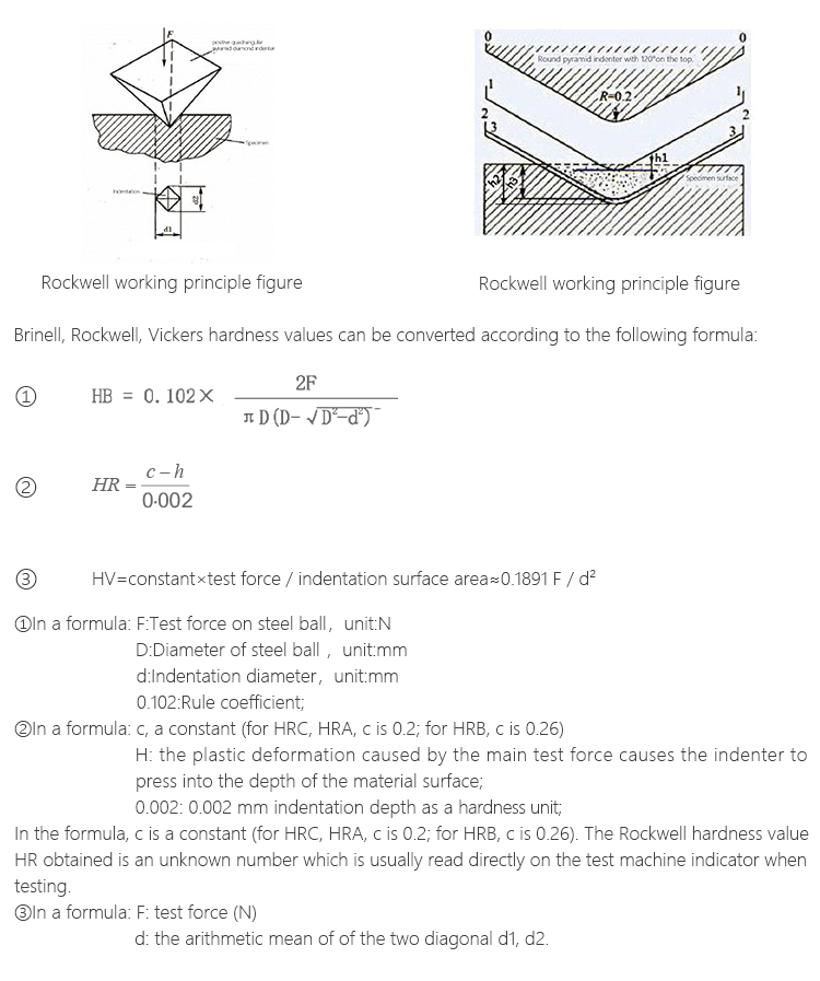 Rockwell hardness test is a vertex angle of 120 ° diamond cone or a certain diameter of the hardened steel ball as a pressure to the specified test force will be pressed into the sample surface, according to the sample surface indentation depth to be measured The Rockwell hardness of metallic materials.