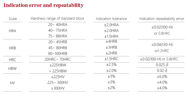 | Measuring Range for Brinell | 8HBW~650HBW |