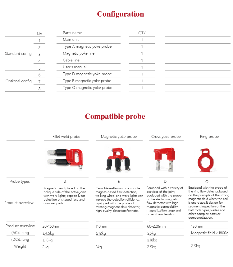 | Mitech multi-function magnetic flaw detector with a dedicated random packing information. Including product certification, warranty card, product brochures, packing list. Random information using a special coated paper printed, graphic and brochures, simple and easy to understand, easy to long-term preservation. Note: The random information of Mattel brand products can be downloaded at www.jszhengliang.com. | |