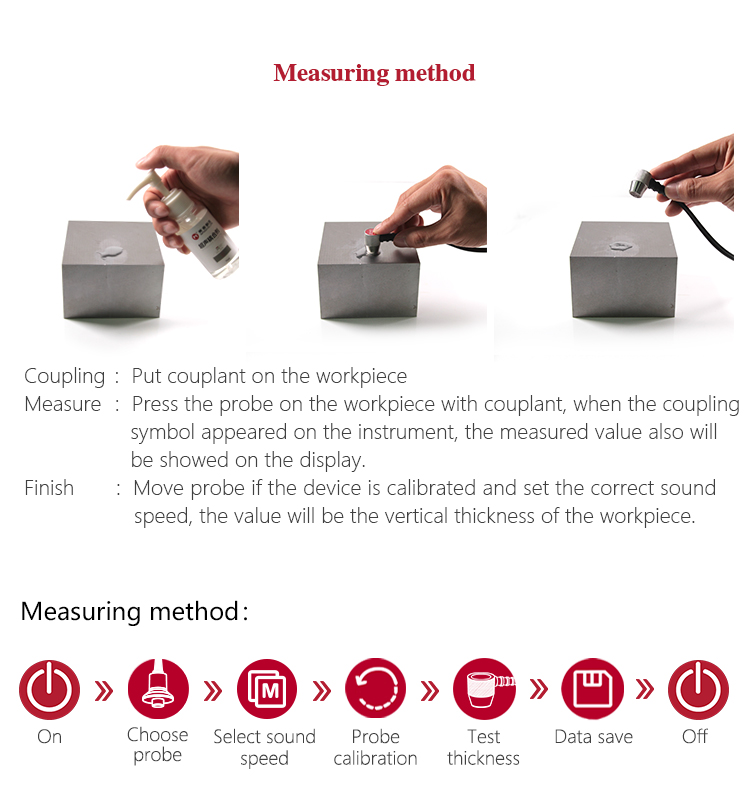 Instrument FeaturesSuitable for measuring metal (such as steel, cast iron, aluminum, copper, etc.) , plastics, ceramics, glass, fiber glass and any other good ultrasonic conductors;