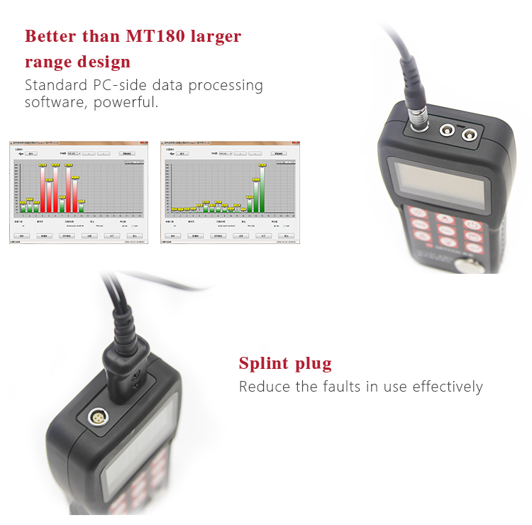 The data proceeding software for ultrasonic thickness gauge, the standard configuration for MT600/MT660, it can be easily and quickly do data exchange and parameter settings with PC. It has rich features like measurement storage management, statistical analysis of measured value, printing measurement report and so on. It is suitable for steel manufacturing, ship-building, automobile manufacturing, aircraft manufacturing, high pressure vessels, electric devices, bearings, standard parts, metal textile accessories and instrumentation accessories and production enterprises related with metal material products. With the analysis results provided by the software, it can make enterprise quality control more scientific basis and higher traceability. Improving the quality of enterprise information management level is the effectively guarantee for enterprise analysis the product qualification rate and improve the quality monitor. The software can also be used as effective tools in scientific research units related with metal materials, manufacturing plants, universities and other departments engaged in theoretical teaching, experimental analysis and basic scientific research.