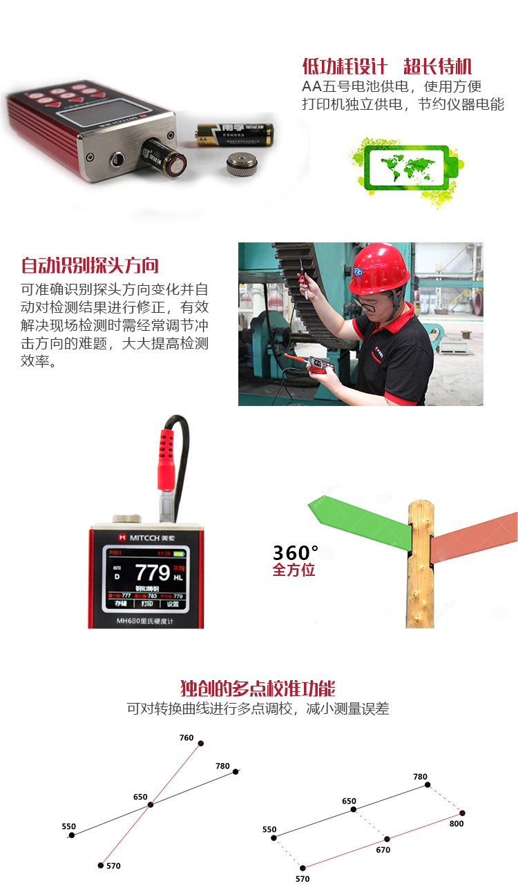 產品概述MH680便攜式里氏硬度計是定制化在線硬度檢測系統的配套產品,它可實現藍牙無線傳輸數據,將自動化硬度檢測系統工作中采集的硬度值傳輸至電腦端,通過藍牙接口與儀器進行通訊,實現在線實時監測數據,對超出范圍的不良品及時報警或自動噴標處理,針對檢測量大、效率要求高的用戶需求,可解放人力、提高生產效率,被廣泛應用于量產較大的金屬加工制造業,本公司可提供針對不同用戶需求的軟硬件定制化服務。