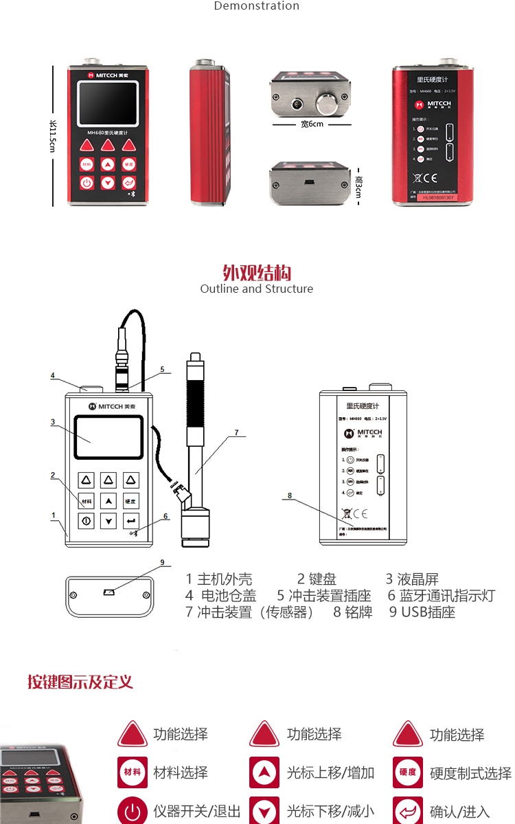 儀器特點基于里氏硬度測量原理,可以對多種金屬材料進行硬度和強度測試;