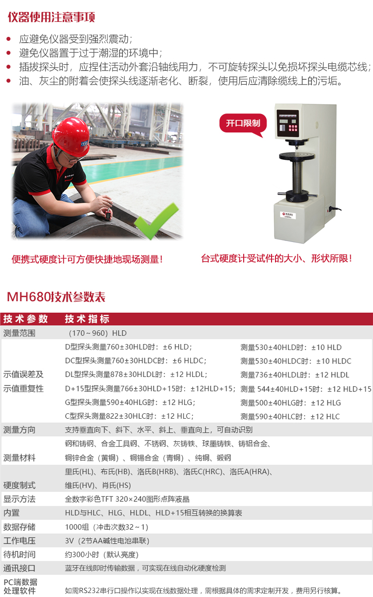 | 測量材料 | ?鋼和鑄鋼、合金工具鋼、不銹鋼、灰鑄鐵、球墨鑄鐵、鑄鋁合金、銅鋅合金(黃銅)、銅錫合金(青銅)、純銅、鍛鋼; |