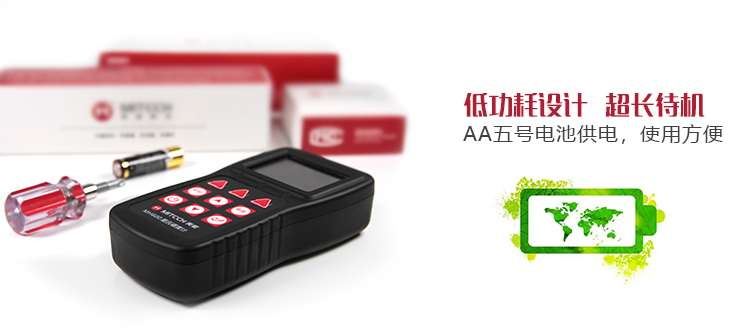 兩節普通5號電池供電,可連續工作不小于100小時;具有自動屏幕待機、自動休眠、自動關機等節電功能
