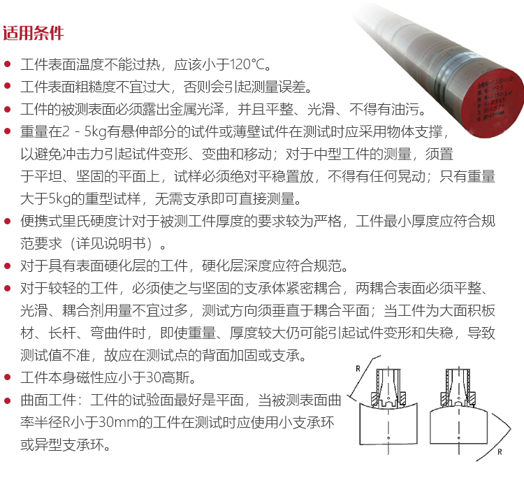 里氏硬度:規定質量的沖擊體在彈力作用下,以一定速度沖擊試樣表面并回彈,用沖擊體在距試樣表面1mm處的回彈速度與沖擊速度的比值計算硬度值。