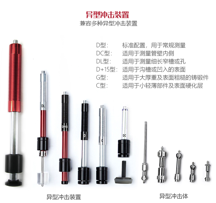 美泰便攜式里氏硬度計C型沖擊裝置,長:141mm,重:75g  直徑:20mm,內置較為薄小的C型沖擊體,美泰便攜式里氏硬度計C型沖擊裝置,沖擊能量更小,約為D型頭的1/4,適用于重量在1.5kg以上厚度在1mm以上的、硬化層0.2mm以上小輕薄部件及表面硬化層的硬度檢測,對被測工件的表面損傷極小,不破壞硬化層。可實現里氏、布氏、洛氏等硬度的精確測量。