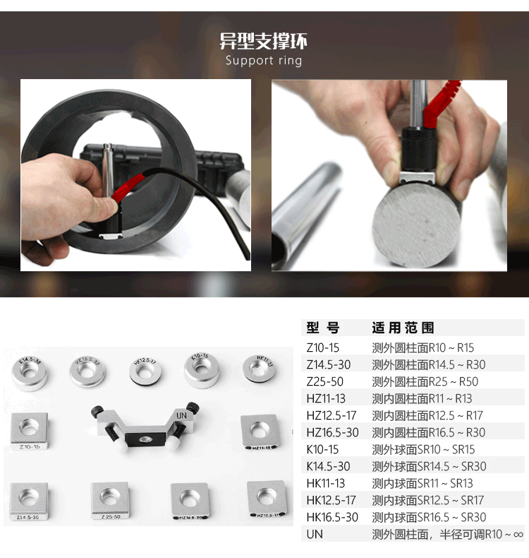 美泰鋼管硬度計異型支承環HZ12.5-17,適用于R12.5-17 內圓柱面的檢測,可替代標準支撐環使用。