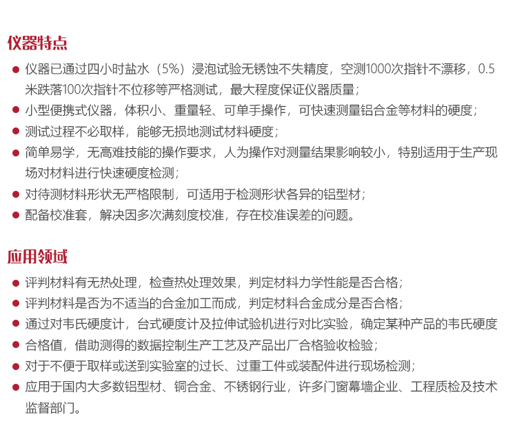 簡單易學,無高難技能的操作要求,人為操作對測量結果影響較小,特別適用于生產現場對材料進行快速硬度檢測;