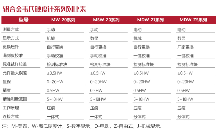 美泰MW-20系列鋁合金韋氏硬度計儀器主機 |
