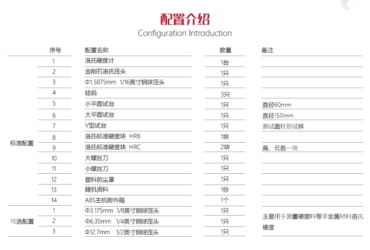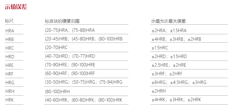 | 可選配的其他洛氏標(biāo)尺 | HRD、HRF、HRG、HRH、HRE、HRK、HRL、HRM、HRP、HRR、HRS、HRV |