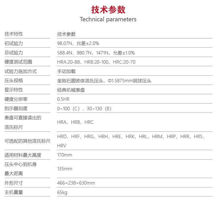 | 硬度測(cè)試范圍 | HRA:20-88、HRB:20-100、HRC:20-70 |