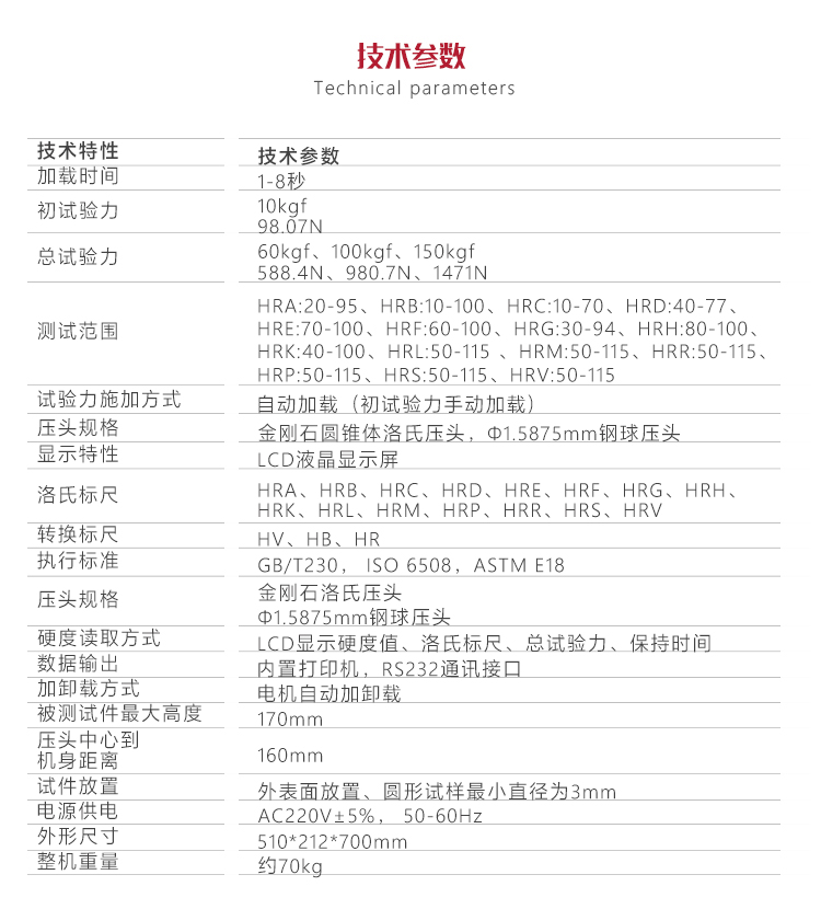 | 執(zhí)行標(biāo)準(zhǔn) | GB/T230, ISO 6508,ASTM E18 |