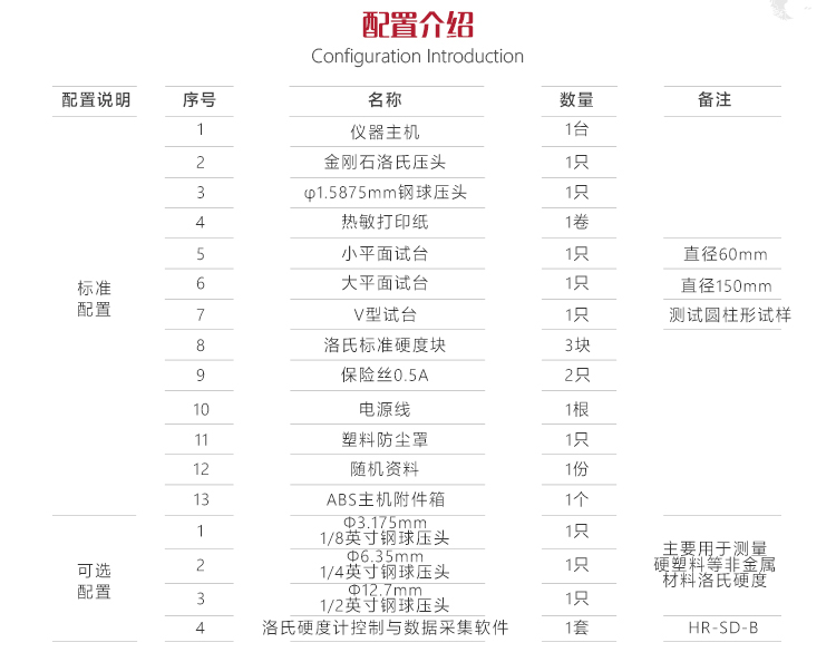 | 測(cè)試范圍 | HRA:20-95、HRB:10-100、HRC:10-70、HRD:40-77、HRE:70-100、HRF:60-100、HRG:30-94、HRH:80-100、HRK:40-100、HRL:5 |