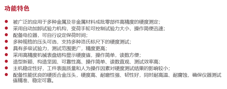 儀器特點?被廣泛的應用于多種金屬及非金屬材料成批零部件高精度的硬度測定;