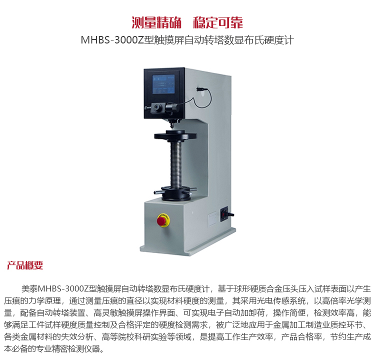 儀器的保養與維護美泰MHBS-3000Z觸摸屏自動轉塔數顯布氏硬度計屬精密檢測儀器,使用中應特別注意如下事項: