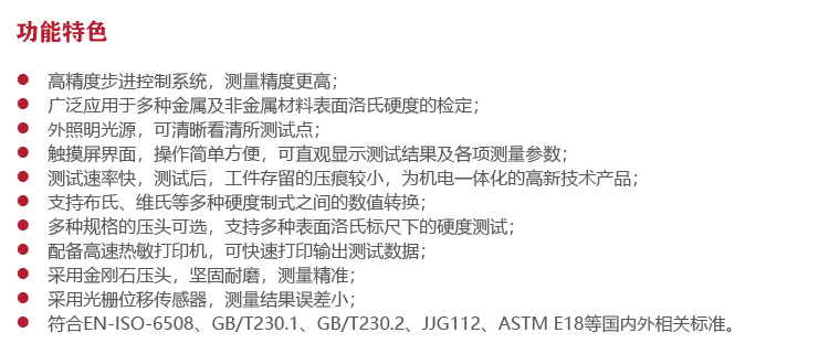 ?符合EN-ISO-6508、GB/T230.1、GB/T230.2、JJG112、ASTM E18等國內外相關標準。