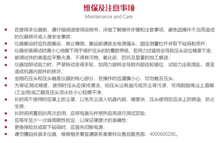 長時間不使用時應罩上防塵罩,以免灰塵進入機器內部,硬度塊、壓頭使用后應涂上防銹油,防止生銹;
