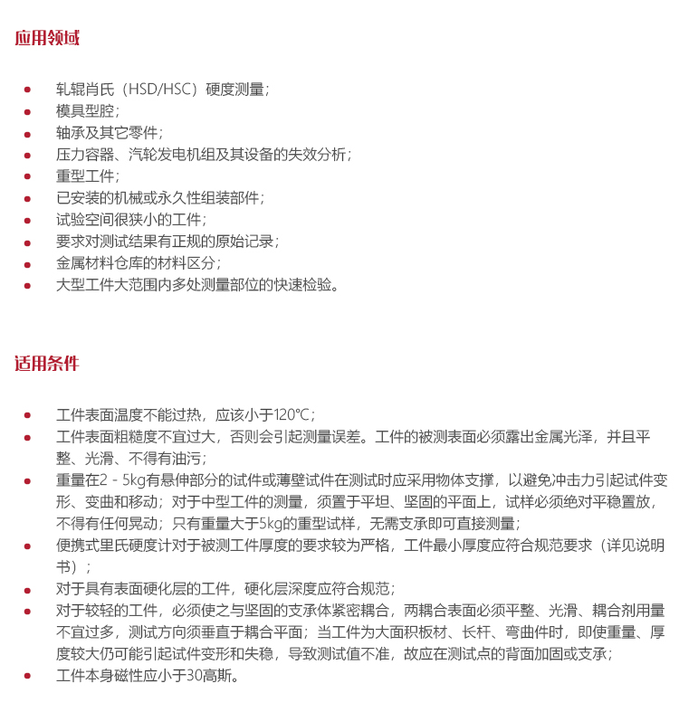 l 便攜式里氏硬度計對于被測工件厚度的要求較為嚴格,工件最小厚度應符合規范要求(詳見說明書)。
