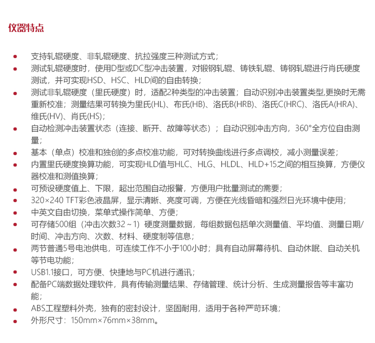 儀器特點l 支持軋輥硬度、非軋輥硬度、抗拉強度三種測試方式;