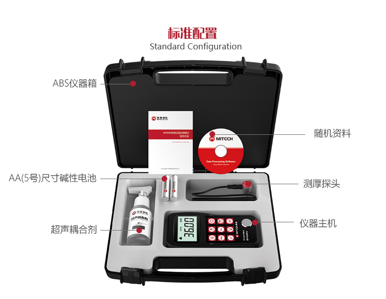美泰系列便攜式超聲波測厚儀附有專用的隨機裝箱資料。包括產品合格證、保修卡、產品說明書、裝箱清單。隨機資料采用專用的銅版紙印制,說明書圖文設計,美觀、易懂、便于長久保存。注:美泰品牌系列產品的隨機資料均可登陸www.jszhengliang.com下載電子版。