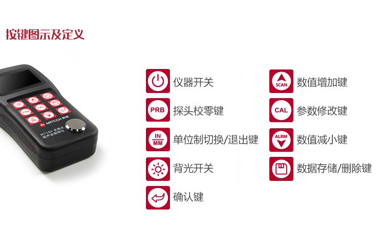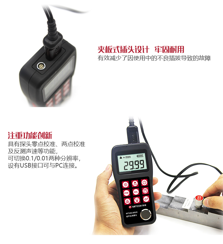 功能用途適合測量金屬(如鋼、鑄鐵、鋁、銅等)、塑料、陶瓷、玻璃、玻璃纖維及其他任何超聲波的良導體的厚度