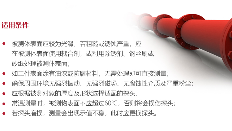 若被測體表面有大量耦合劑時,當探頭離開被測體表面時,耦合劑會引起誤測。因此測量結束時,應迅速將探頭移開被測體表面。