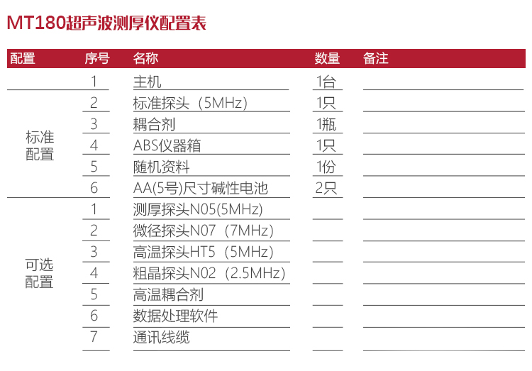 | 探頭直徑 | 測厚探頭NO5直徑10MM、微晶探頭N07直徑6MM、高溫探頭HT5直徑12MM、窄脈沖測厚探頭P5EE直徑10MM、粗晶探頭直徑12MM |