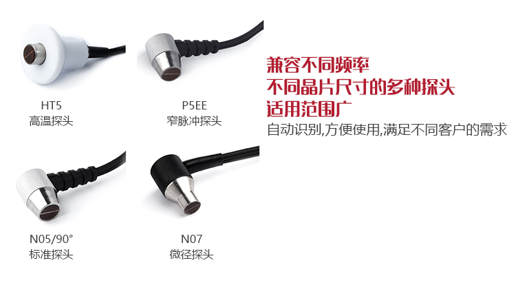 可以兼容多種不同頻率、不同晶片尺寸探頭,自動識別高溫、粗晶、小管徑等不同探頭類型