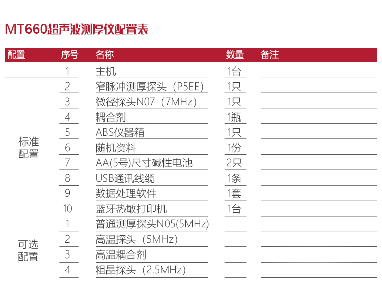 | 探頭直徑 | 測(cè)厚探頭NO5直徑10MM、微晶探頭N07直徑6MM、高溫探頭HT5直徑12MM、窄脈沖測(cè)厚探頭P5EE直徑10MM、粗晶探頭直徑12MM |