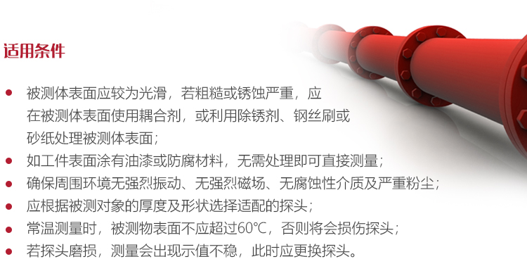 若被測(cè)體表面有大量耦合劑時(shí),當(dāng)探頭離開(kāi)被測(cè)體表面時(shí),耦合劑會(huì)引起誤測(cè)。因此測(cè)量結(jié)束時(shí),應(yīng)迅速將探頭移開(kāi)被測(cè)體表面;