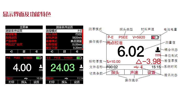| 測(cè)厚模式 | 發(fā)射-回波模式(P-E)和回波-回波(E-E)模式 |