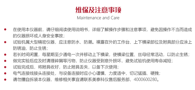 試驗機屬大型精密儀器,應注意防水、防潮。裸露在外的工作臺、上下橫梁部位及附具部分應涂上防銹油,防止生銹;